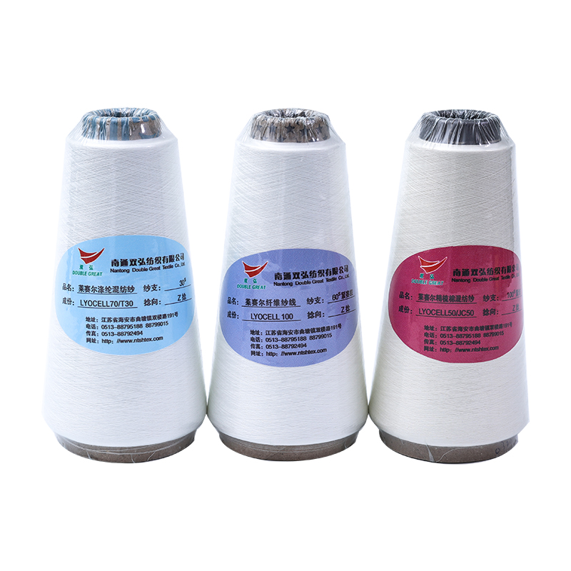 Lyocell -sarjan lanka: Lyocell Fiber on ympäristöystävällinen ja sillä on hyvä suorituskyky, mikä tekee langasta pehmeän, sileän ja erittäin hygroskooppisen.